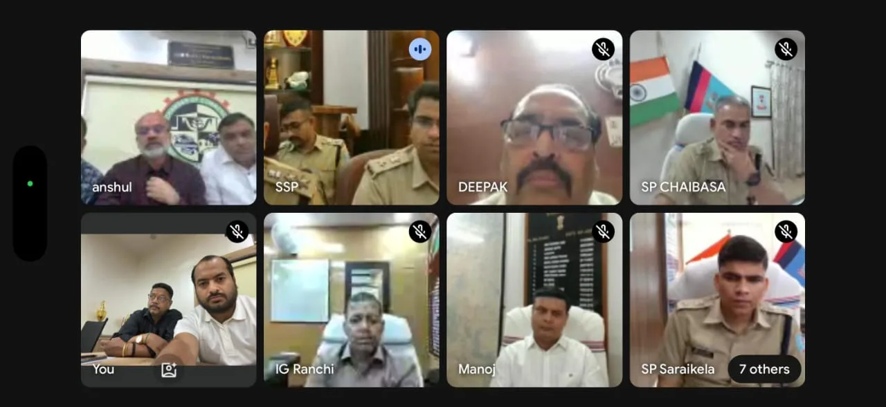 सिंहभूम चैम्बर ऑफ कॉमर्स एंड इंडस्ट्री के द्वारा झारखण्ड राज्य के क्षेत्रीय पुलिस महानिरीक्षक (आई.जी.) अखिलेश झा, भा.पु.से. एवं कोल्हान के डी.आई.जी. मनोज रतन चोथे, भा.पु.से. के अलावा कोल्हान के तीनों जिले पूर्वी सिंहभूम के वरीय पुलिस अधीक्षक किशोर कौशल, भा.पु.से., पूर्वी सिंहभूम पुलिस अधीक्षक (नगर) कुमार शिवाशीष, भा.पु.से., पूर्वी सिंहभूम ग्रामीण पुलिस अधीक्षक रिषभ गर्ग, सरायकेला के पुलिस अधीक्षक मुकेश लुनायत, भा.पु.से. एवं चाईबासा के पुलिस अधीक्षक आशुतोष शेखर, भा.पु.से. के साथ ऑनलाईन जूम मीटिंग का आयोजन किया गया। मीटिंग के दौरान कोल्हान के तीनों जिलों के विभिन्न क्षेत्रों में विधि व्यवस्था, ट्राफिक व्यवस्था के अलावा अन्य समस्याओं पर सभी का ध्यानाकृष्ट कराया गया। तथा इसपर सुधार की मांग की गई। यह जानकारी ं अध्यक्ष विजय आनंद मूनका एवं मानद महासचिव मानव केडिया ने संयुक्त रूप से दी।